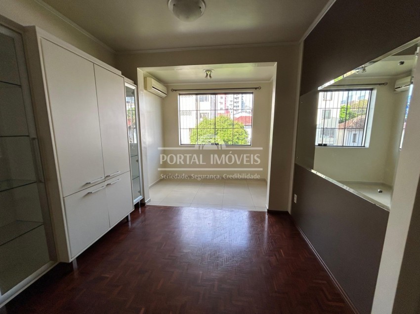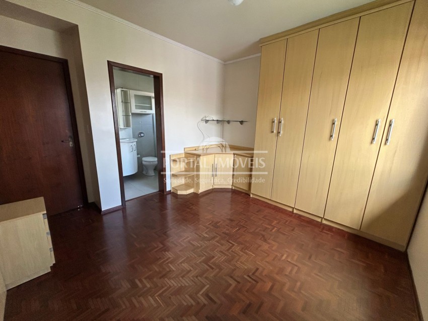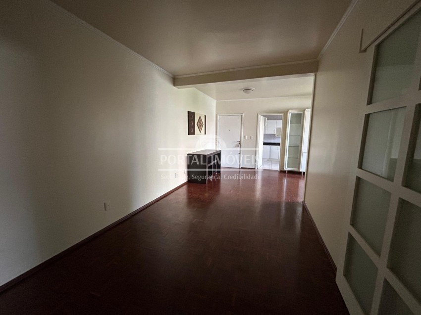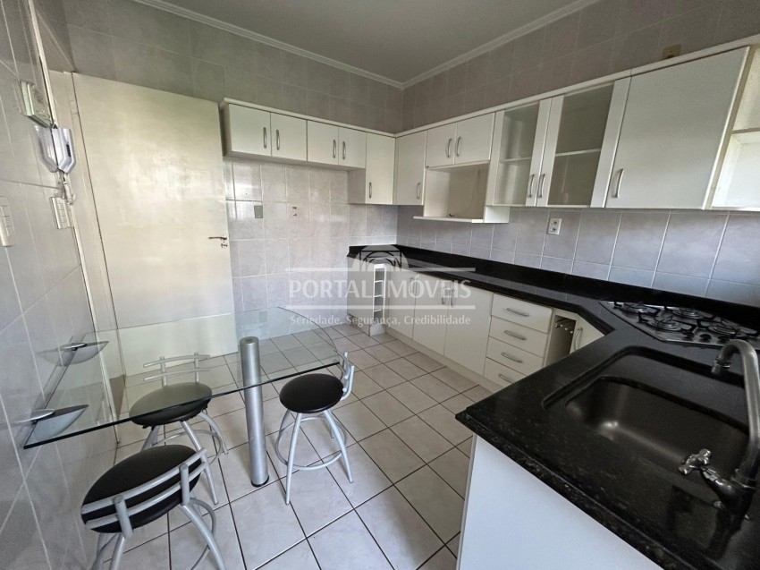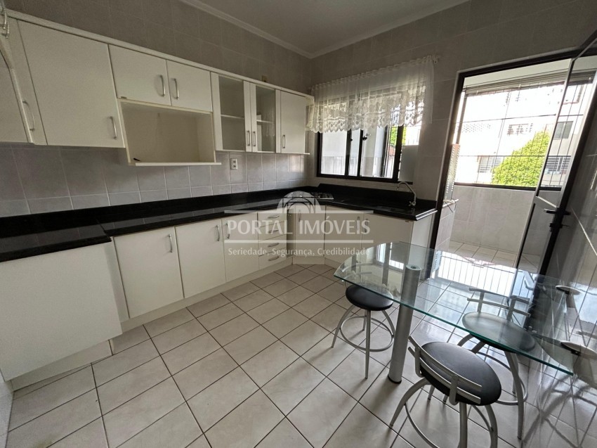 Apartamento semi mobiliado com três dormitórios, sendo um suíte (com climatizador), sala dois ambientes (com climatizador) e sacada fechada, banheiro social, cozinha, área de serviço e vaga de garagem