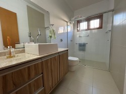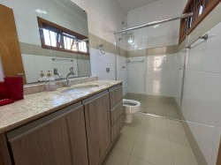 Esta belíssima casa oferece três dormitórios, sendo um suíte com excelente iluminação natural, sala ampla com dois ambientes (climatizadores permanecem), cozinha planejada, área de serviço, banheiro social, área externa generosa, garagem fechada para um carro (mais vagas para deixar o carro no pátio).