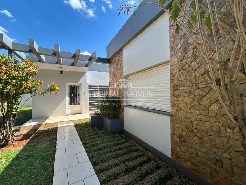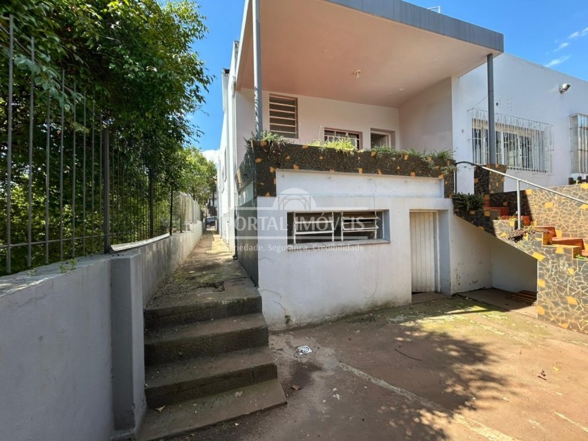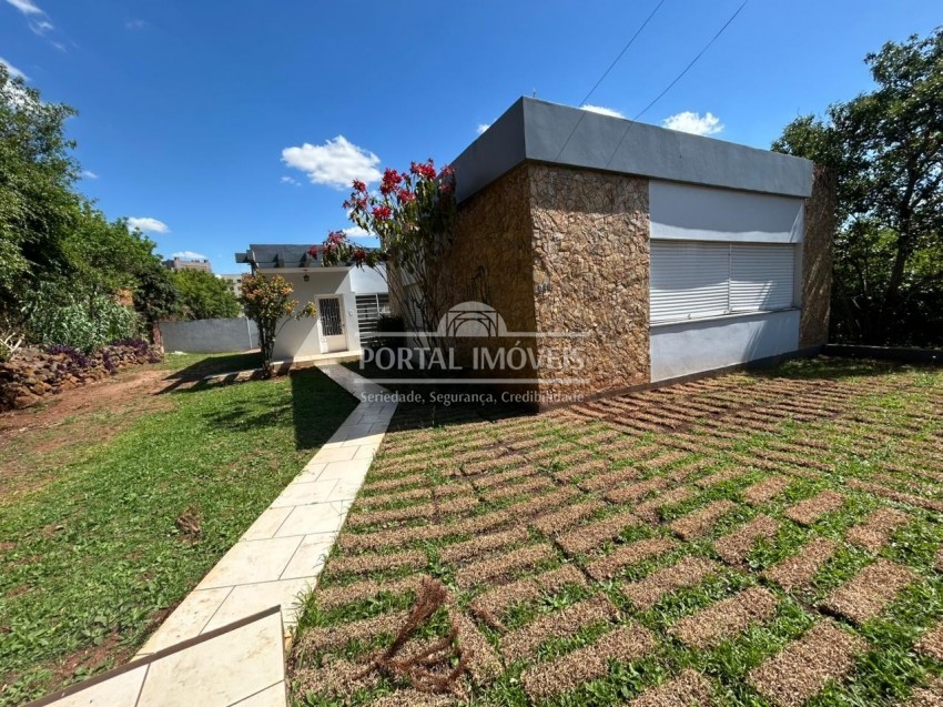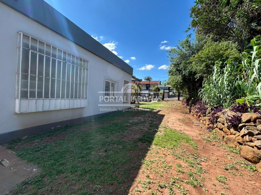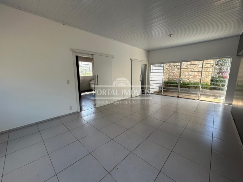 Casa (comercial ou residencial) de alvenaria com quatro dormitórios, sendo um suíte, sala dois ambientes, banheiro social, escritório, sala de estar, cozinha com despensa, área dos fundos com lavanderia.