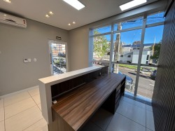Sala térrea em ótima localização de esquina com móveis com aproximadamente 60m², possui uma cozinha e um banheiro social.