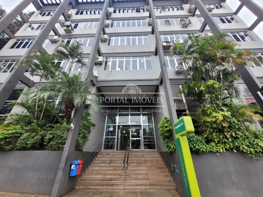 A Sala comercial fica no 4° piso do Edifício Centro Médico Unimed, possui divisória em vidro e um banheiro.