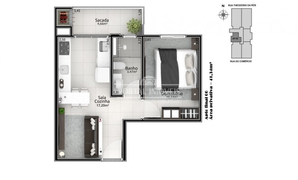 Área Global: 68,75m² | Área Privativa: 42,50m²