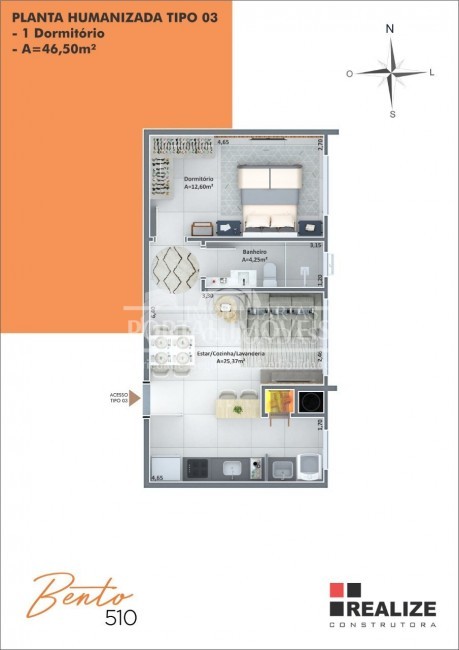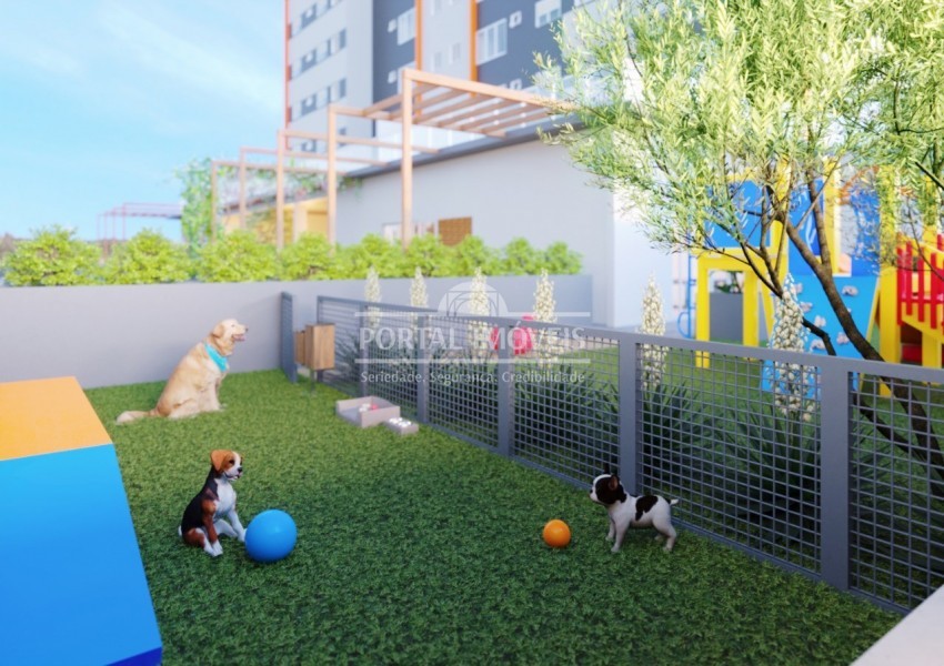 Aptos de 1 dormitório, com 46,50m² de área privativa, box de garagem.