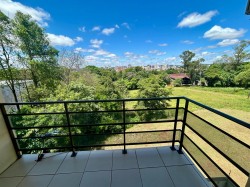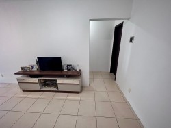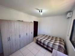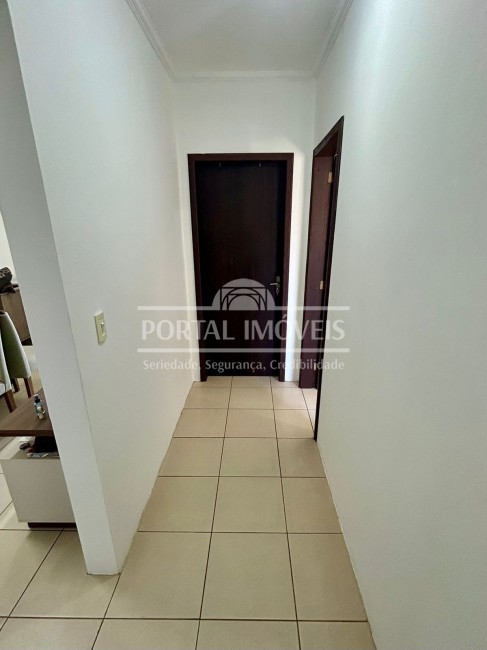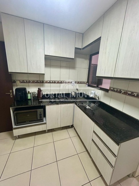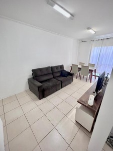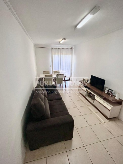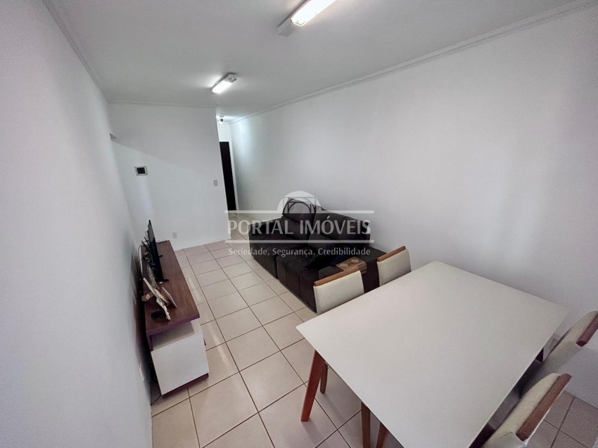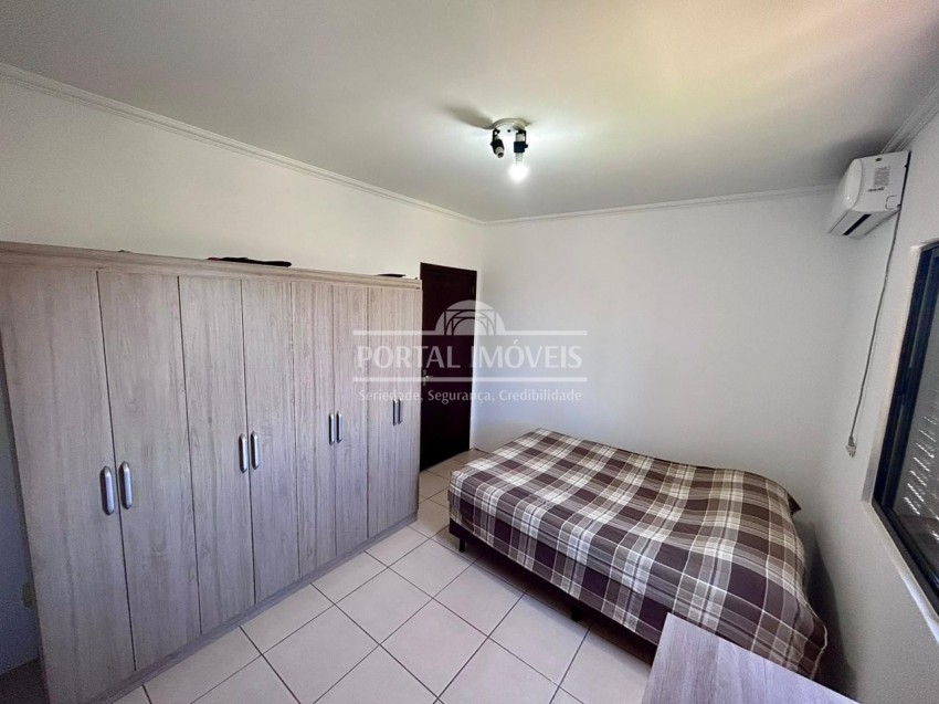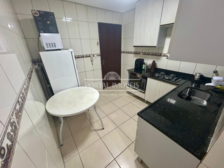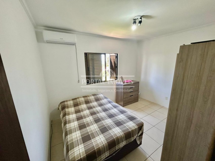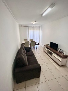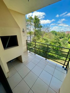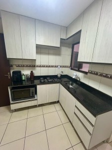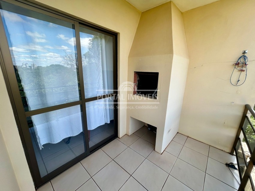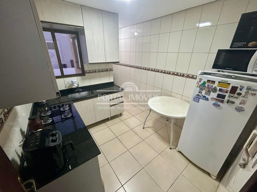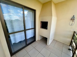 Apartamento de fundos com 2 dormitórios, sala de estar/jantar, cozinha, banheiro, sacada com churrasqueira, área de serviço e garagem. Ficam os armários da cozinha e climatizador.