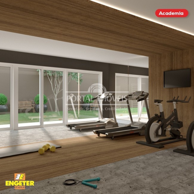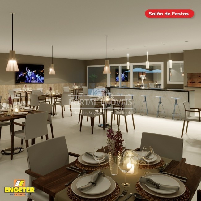 Apartamento com área privativa 120,58 m², com três dormitórios, sendo uma suíte, hall, lavabo social, circulação, sala de estar/jantar conjugadas, cozinha e área de serviço, sacada com churrasqueira, duas vagas de garagem.