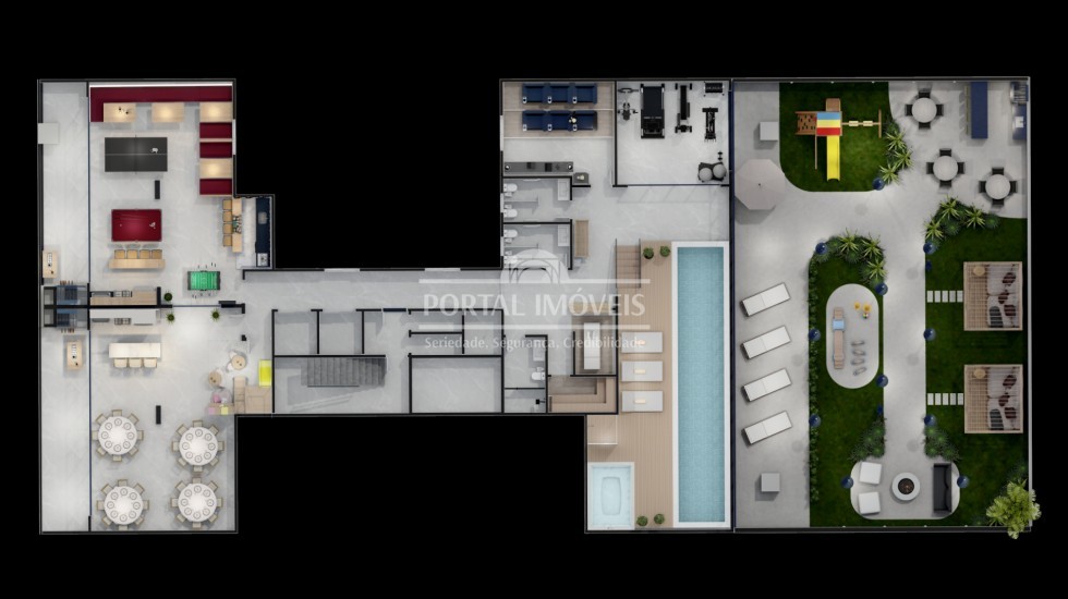 ⇒ Áreas sociais mobiliadas e decoradas;