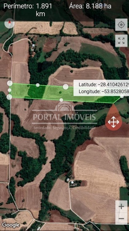 - Área rural com escritura de 6,5 hectares, porém tem uma sobra já incorporada na área de aprox. 1.5 hectares, (planta 6 ha.).