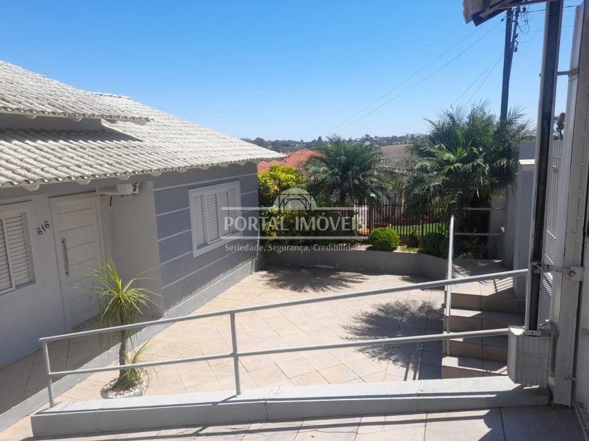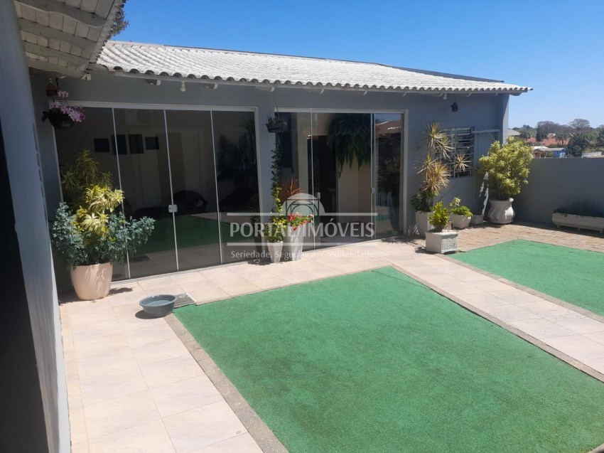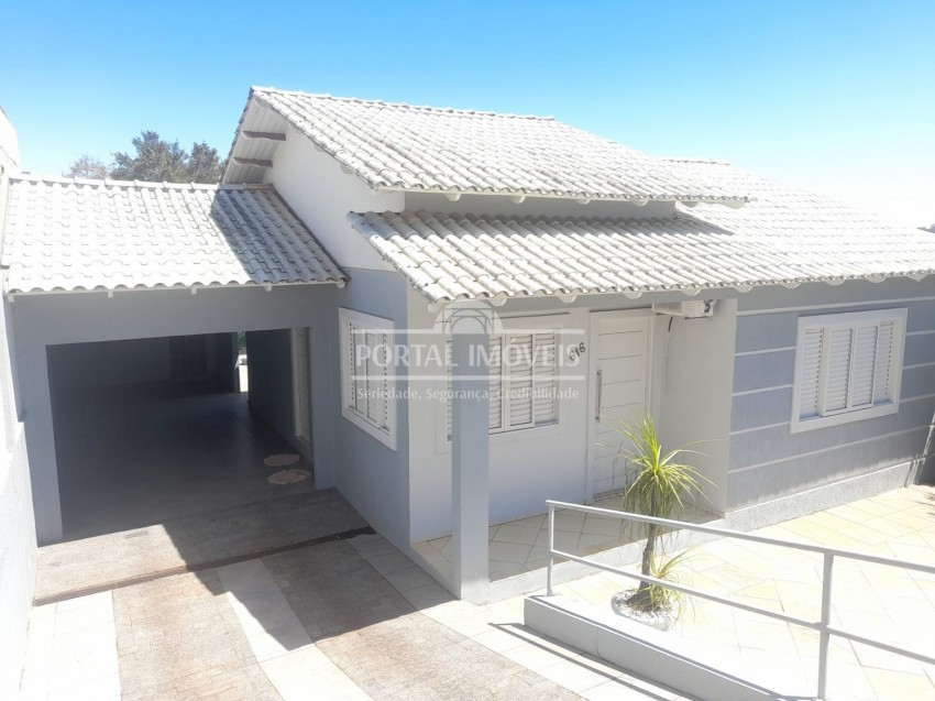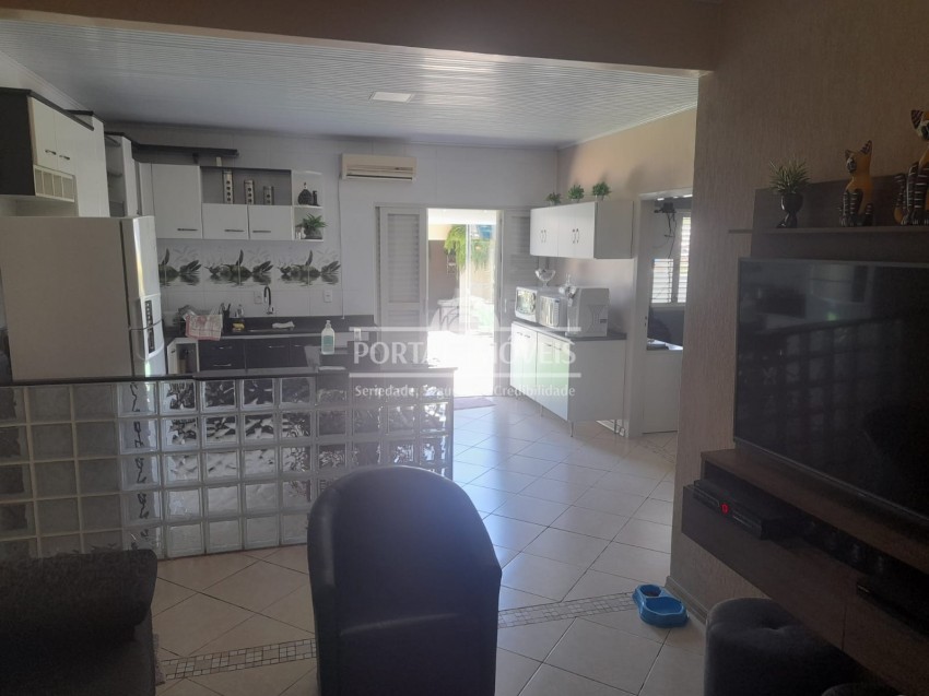 Casa com 2 dormitórios, sala e cozinha conjugadas, banheiro social, escritório ( pode ser um dormitório), garagem para 2 carros.