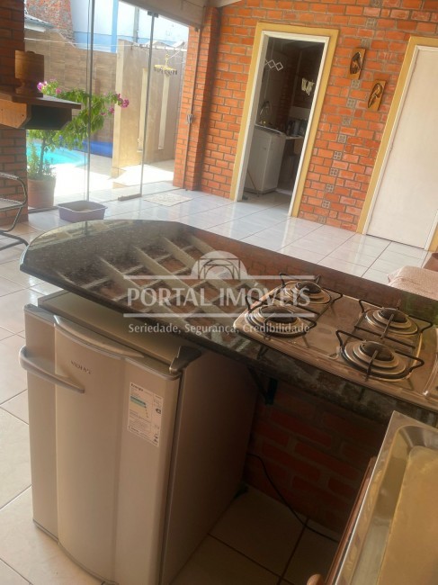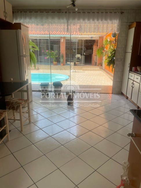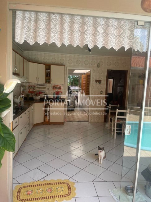 Casa com área construída de aproximadamente 206,75m², com ampla cozinha, móveis sob medida, sala com lareira, opção de 04 quartos, quiosque com churrasqueira, fogão campeiro, fogão cooktop, lavanderia com despensa, piscina 6mx3m, com aquecimento solar, garagem para 02 veículos.