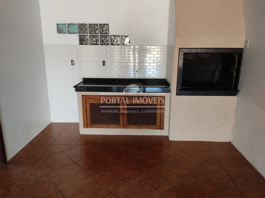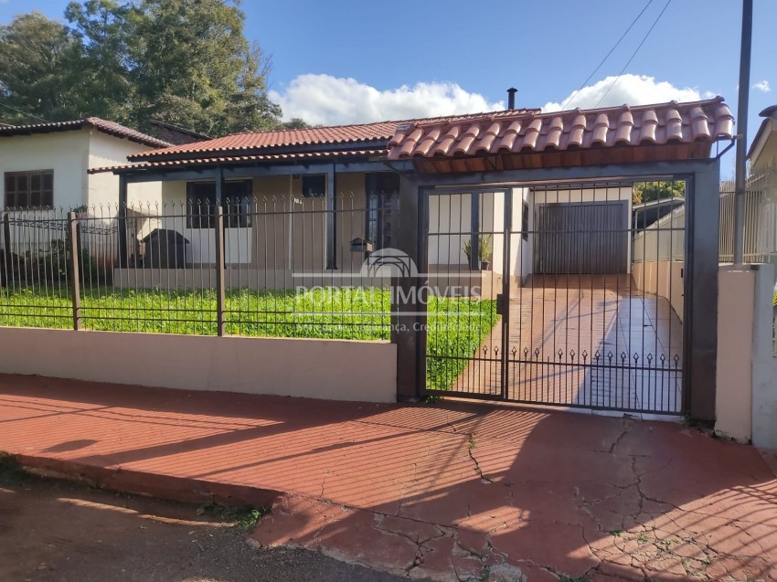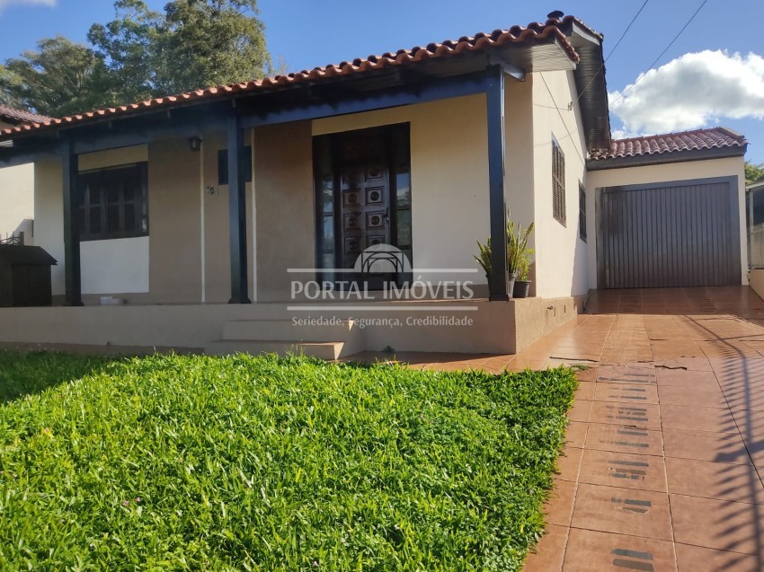 Casa constituída de 3 dormitórios ( uma suíte), duas salas ( uma com lareira), dois banheiros, cozinha ampla, garagem para 2 carros, lavanderia, despensa, churrasqueira e pia. Dois portões eletrônicos.