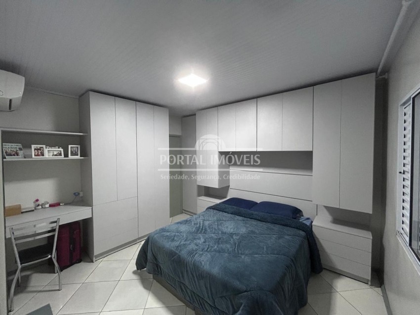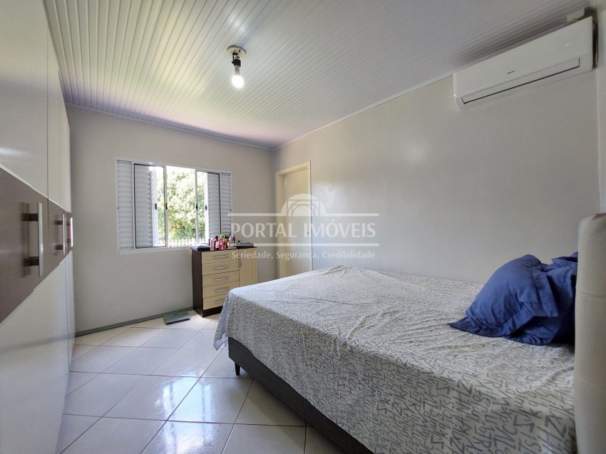Casa com 3 dormitórios, sendo uma suíte com móveis sob medida, duas salas, cozinha, banheiro social. Garagem com churrasqueira, área de serviço e banheiro. Possui energia solar (10 placas).