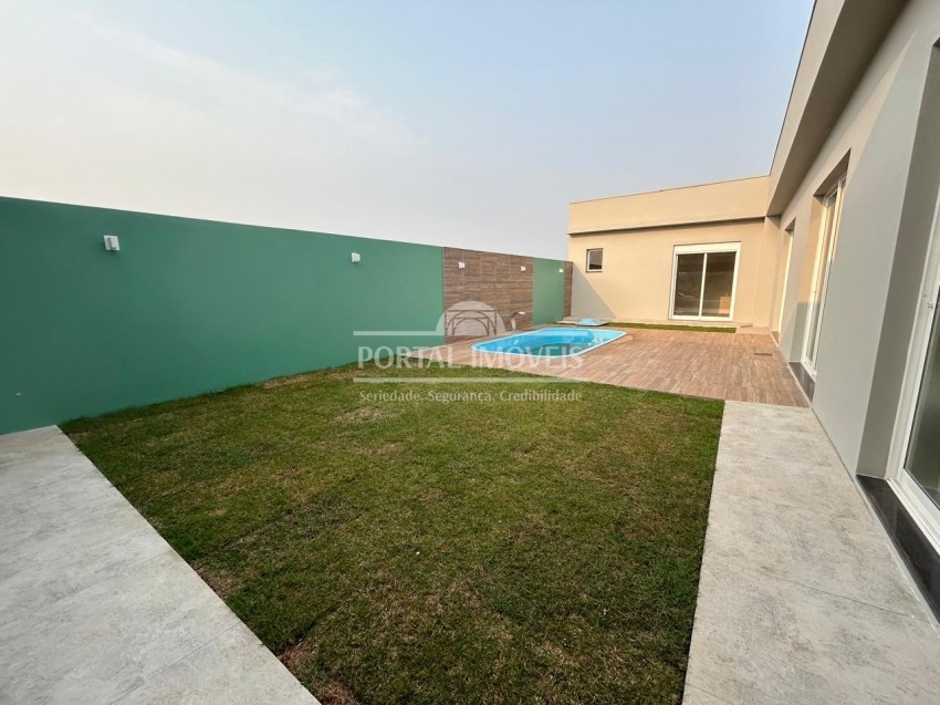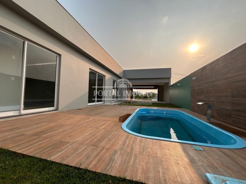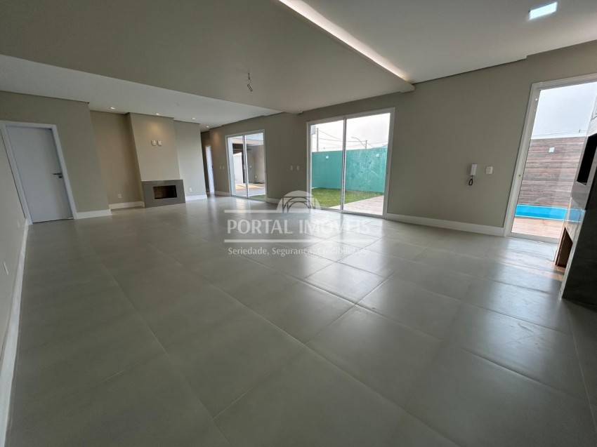 Ao entrar na casa logo vemos uma bela área social integrada, cozinha com churrasqueira e sala com lareira em um belo espaço, com portas amplas com acesso ao maravilhoso pátio onde temos uma linda piscina para você e sua familia desfrutarem de bons momentos juntos.