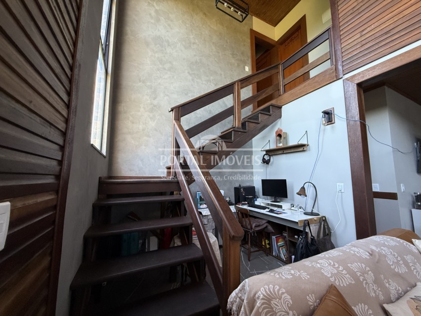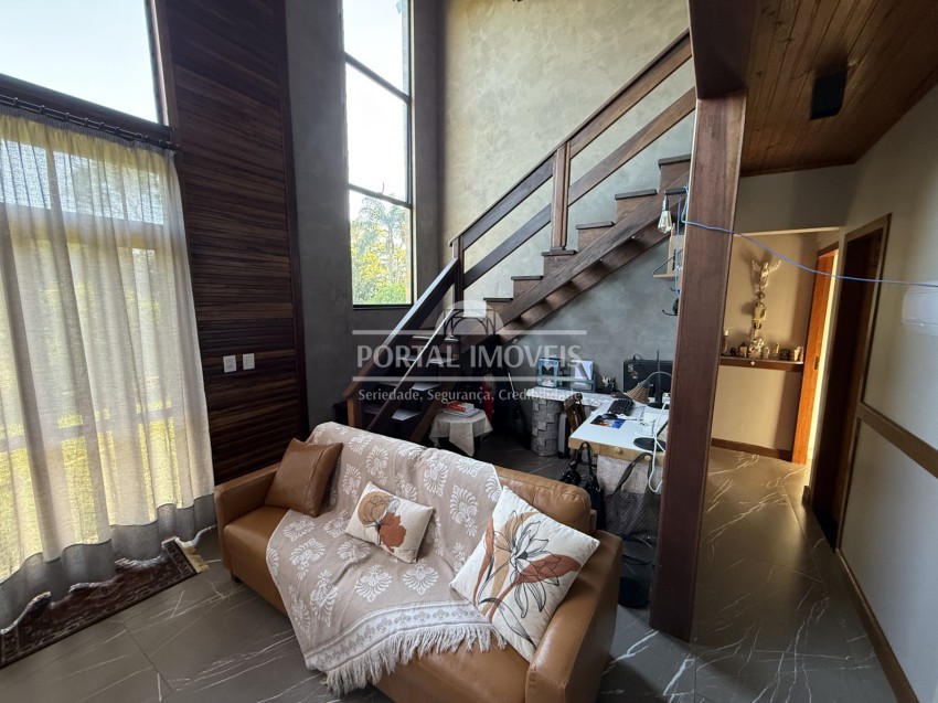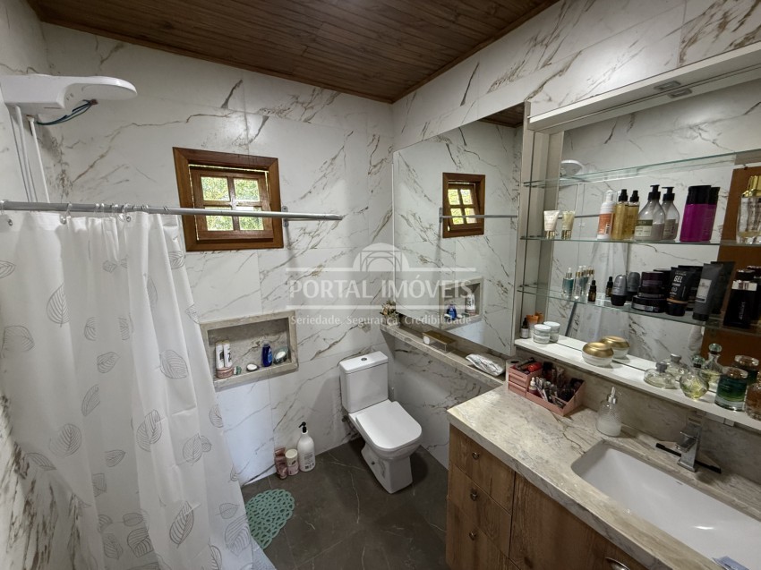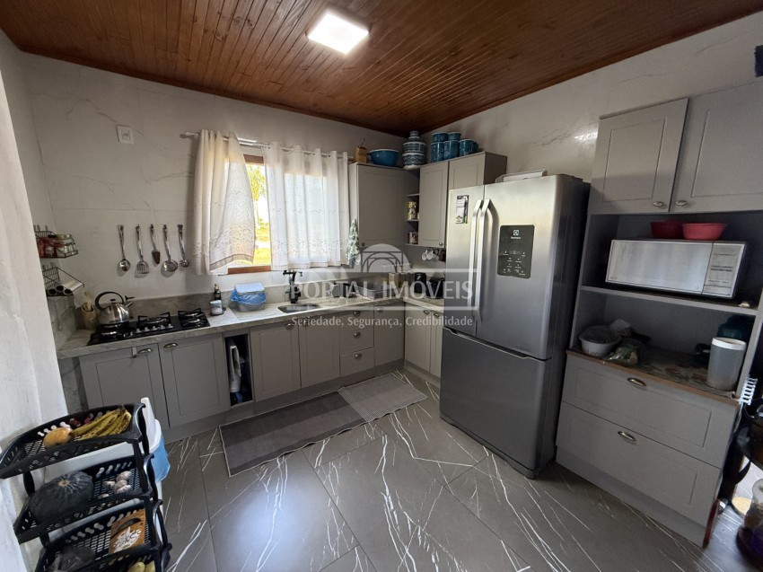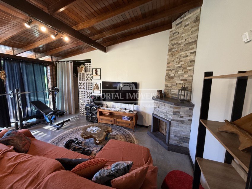 Casa espaçosa com 4 dormitórios ( sendo uma suíte), sala ampla com lareira, cozinha planejada, área de serviço e varanda com vista para a natureza.