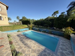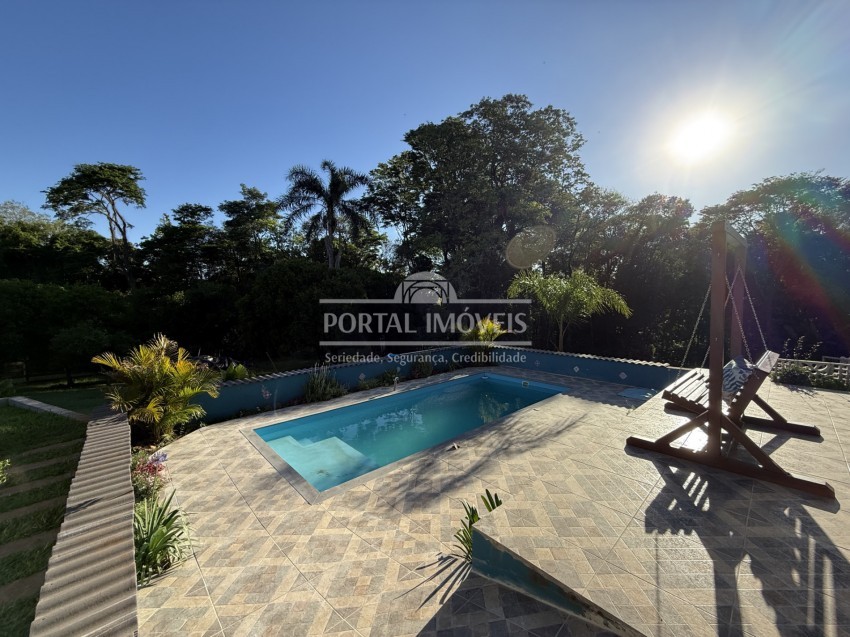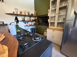 Edícula com quarto de hospede, banheiro, lareira, área de lazer com churrasqueira e uma piscina refrescante perfeita para os dias de sol e momentos de lazer com a família.