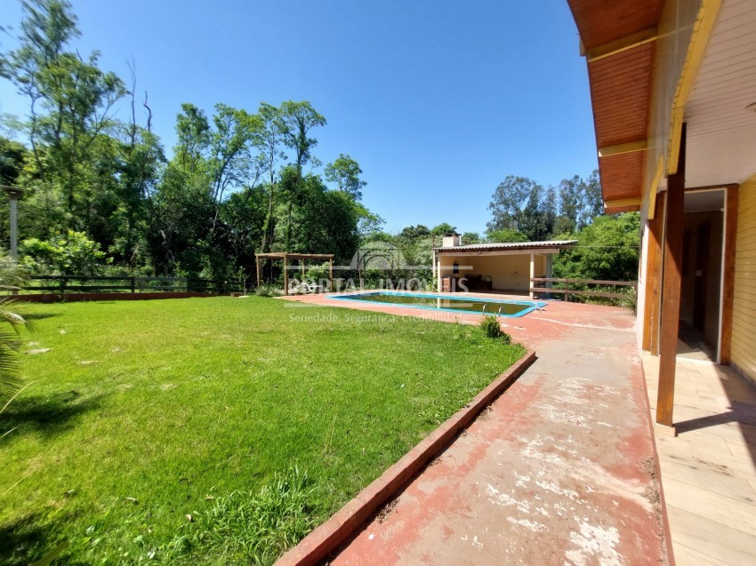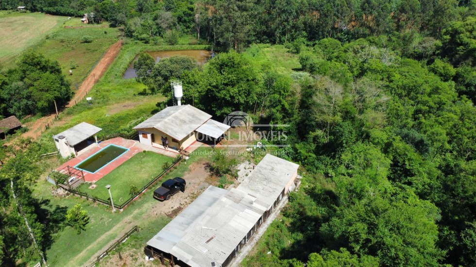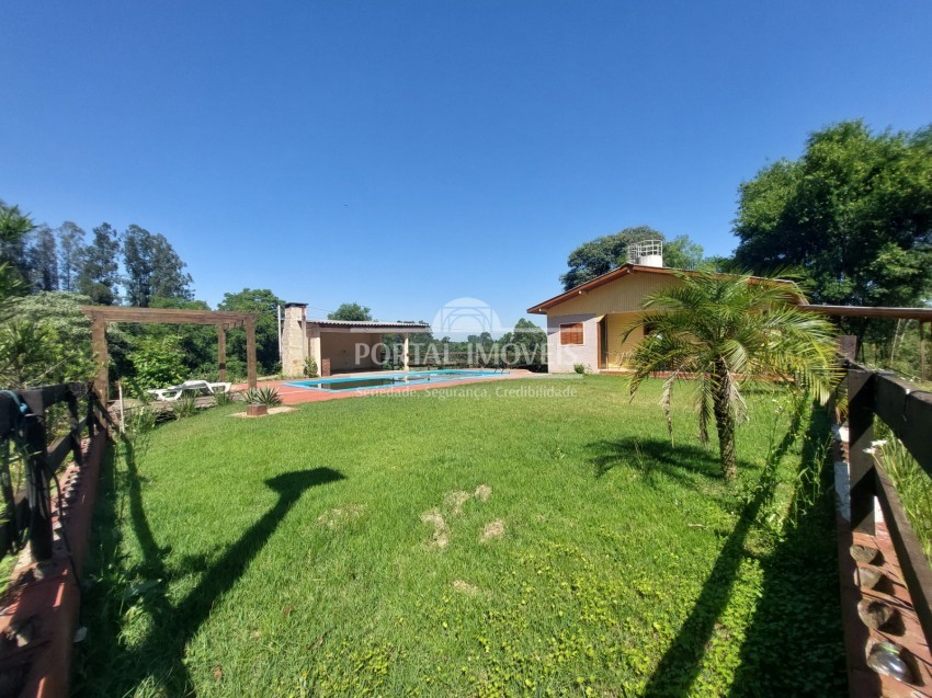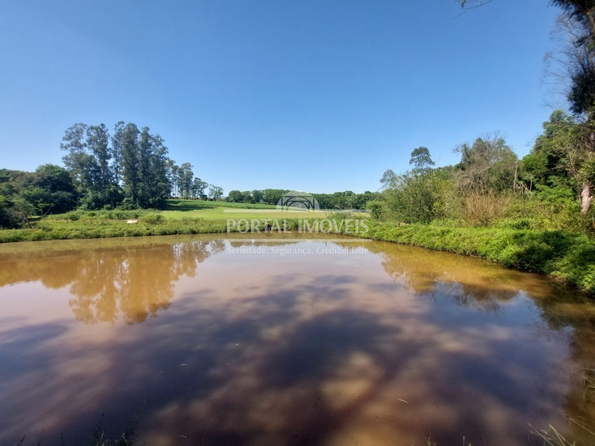 Possui açude, piscina e rio com fácil acesso para embarcação, além disso ainda possui uma casa na região mais alta com uma bela vista com 2 dormitórios, 2 banheiros e piscina com área de lazer com churrasqueira e fogão campeiro.