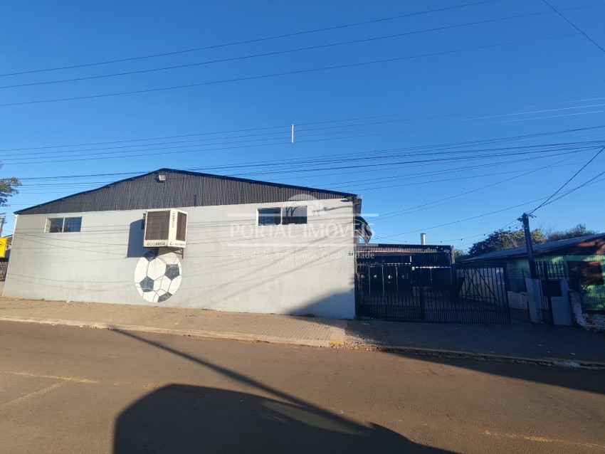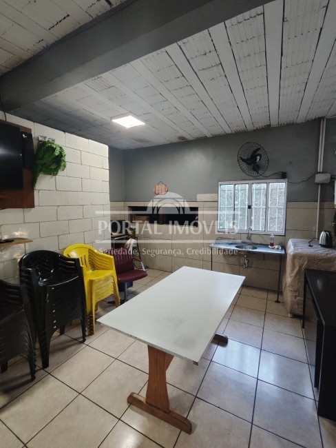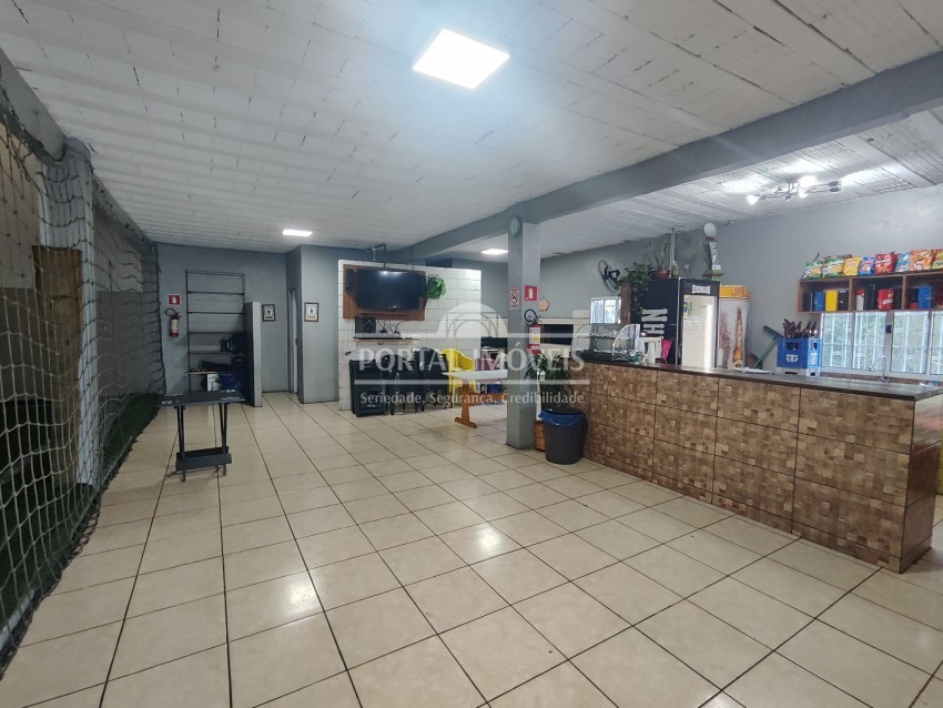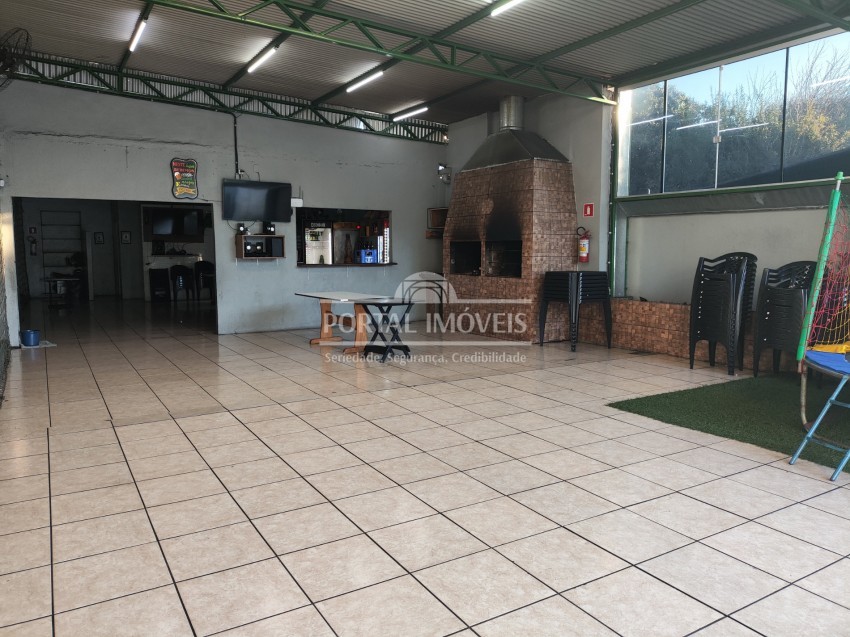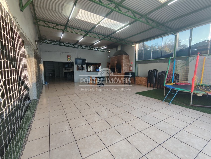 Edificação toda de alvenaria, esquadrias de ferro, cobertura de metal e zinco. com aberturas em alumínio e ferro, piso cimentado com grama sintética e cerâmico, possui energia solar, ventiladores.